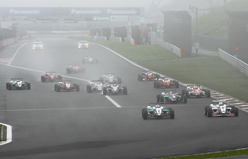 路面は濡れているものの、ほとんどの車両が天気が回復すると読んで晴天時用のタイヤでコースインしてレースがスタートした。